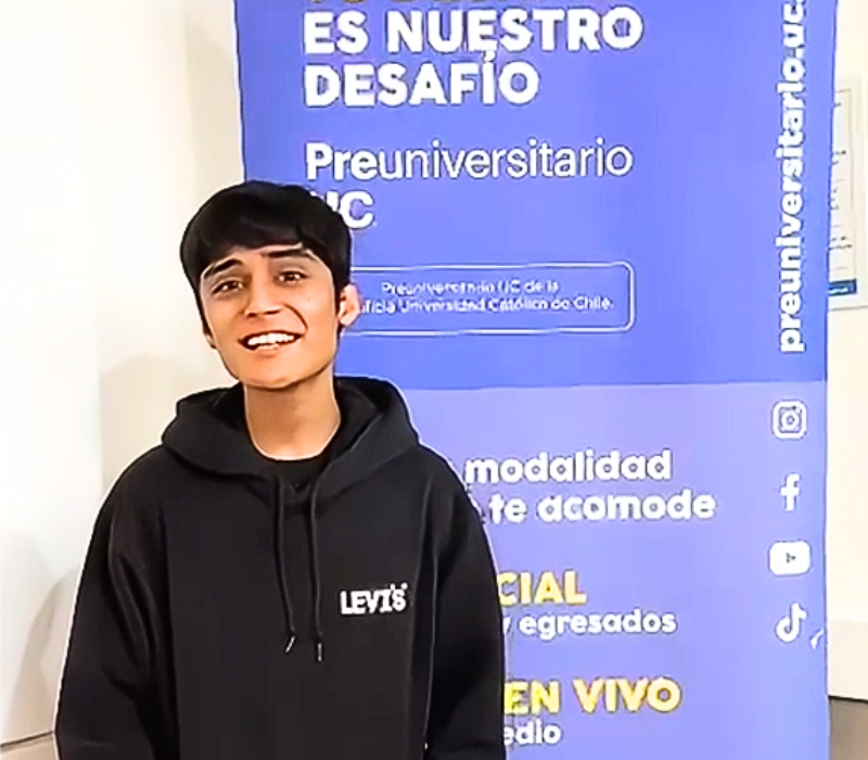 «Gracias al Preu UC, a su excelente material, y al apoyo constante de sus profesores, quienes siempre estuvieron dispuestos a explicarme, corregirme y contestar cada una de las preguntas que tenía, logré obtener buenos resultados en la PAES, entre ellos puntaje máximo en M1. No solo me prepararon para la prueba, me acompañaron en todo el proceso, entregándome tanto herramientas de estudio como de asesoría vocacional.”.