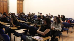 Los estudiantes también tuvieron la oportunidad de dialogar directamente con la doctora, planteándole preguntas sobre el día a día de un bioquímico, las oportunidades de investigación en el extranjero, las posibilidades en Chile y su campo laboral, entre otras inquietudes que enriquecieron la conversación.
