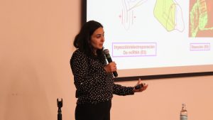 Para finalizar la jornada, la profesora Avilés presentó parte del desarrollo de un estudio sobre la proteína Fat3, mostrando imágenes y resultados obtenidos a partir de la manipulación de la expresión de genes.